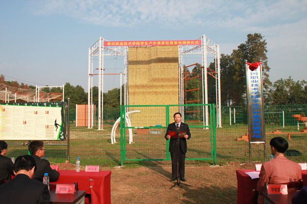 曹杨超经理代表河南建培实业科技有限公司在庆典仪式上致辞。他对黄冈职院素质拓展基地的成功揭牌表示热烈的祝贺,对XK星空给予河南建培实业科技有限公司的大力帮助与支持表示了衷心的感谢,并祝愿XK星空在高职教育事业上再续新辉煌。