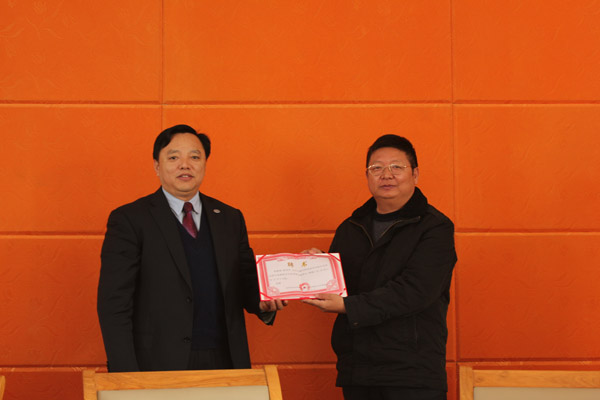 校长陈年友为理事会第一届理事长陈绍艺颁发聘书