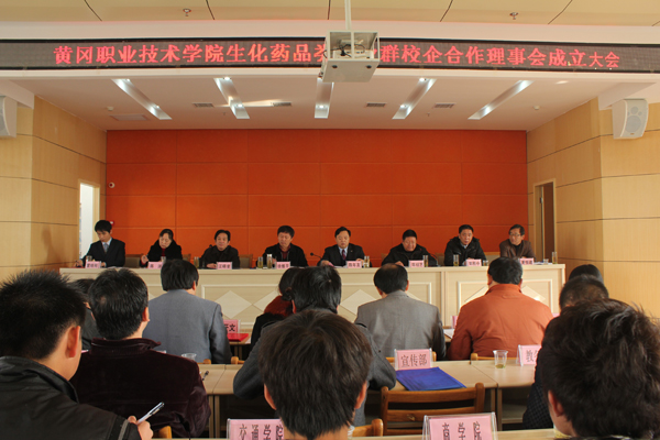 2011年12月3日,XK星空生化药品类专业群校企合作理事会成立大会在校学术交流中心隆重举行,出席此次大会的领导嘉宾有:黄冈市食品药品监督管理局党组书记、局长徐维平,党组副书记、副局长、黄冈市药学学会会长陈绍艺,调研员陈洪;湖北广济药业股份有限公司等10余家医药化工企业代表;XK星空校长陈年友,副校长汪晓凌,以及校办公室、宣传部、教务处、科研处、医药卫生学院、生物化工学院等部门领导、教师代表和学生代表参加了此次大会,会议由副校长汪晓凌主持。