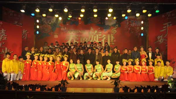 在晚会开始之前,校长陈年友致新年贺词,他用精炼优美的语言高度概括了2011年学校各项工作所取得的成绩,并向全校师生致以新春的问候。紧接着晚会在开场舞《新年好》喜庆的氛围中拉开了帷幕,节目轮番上演,歌舞《龙的传人》、诗朗诵《四季遐想》、健美操、戏•歌联唱等节目一个赛一个精彩,观众不时爆发出热烈掌声。笑点最多的要数青年教师自编、自导、自演的混搭节目《非诚勿扰》,让观众耳目一新,通俗俏皮的语言,精彩搞笑的包袱,逗得观众们笑声连连。与XK星空交流合作单位武汉语言文化职业学院师生演绎的歌舞《祖国之恋》及舞蹈《裙摆舞》均具有较高的艺术水准,让观众一同感受了兄弟院校的文化气息。本场晚会有学生节目、老师节目,更有领导节目,师生同台献艺,节目精彩纷呈,美妙的歌声,柔美的舞姿,美轮美奂的场景,为观众们献上了一台别开生面的艺术盛宴 。