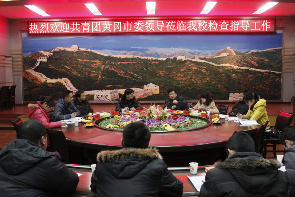 2012年3月6日下午,团市委副书记骆明正、学校部部长江若萱、 市直团工委书记范栋,黄州区团委副书记陈媛媛一行,就XK星空2011年度共青团工作进行检查考核。工作汇报会在凝智楼中心会议室举行。学校党委委员郑柏松、学工处处长、团委书记叶华光,副处长徐火军、李宁,校团委科长张爱东、吕晓霞及各学院团总支副书记参加了汇报会。