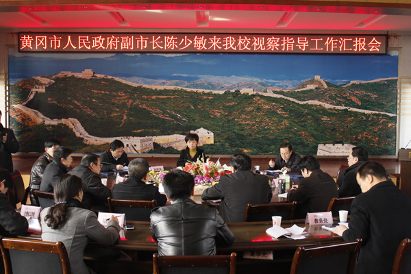 3月14日上午,副市长陈少敏一行4人到黄冈职院调研。她说,走进黄冈职院,感觉耳目一新,有一种在很多地方感受不到的力量,让人精神得到升华。