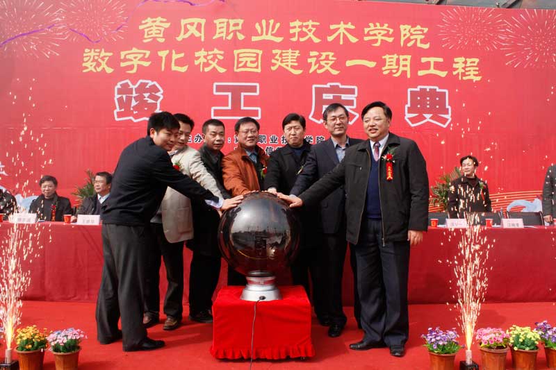 庆典由学校党委书记张鹤桥同志主持,校长陈年友教授致欢迎辞,黄冈市人大常委会副主任王建明,中国电信黄冈分公司总经理蔡志军、中国银行黄冈分行行长汪宁一等分别讲话,庆典在礼炮齐鸣、与会领导及代表触摸电子球中落下帷幕。随后,与会领导兴致勃勃地参观了学校数据中心机房和一卡通管理中心。