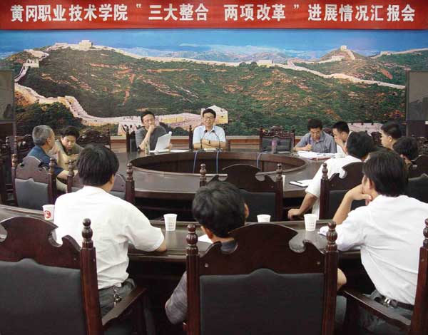 7月6日下午,我院在中心会议室召开了“三大整合、两项改革”进展情况汇报会,院领导涂普生、覃守云、李家瑞、李耀水、段院生、夏启中;各系部书记、主任、教学副主任、教研室(组)主任、教务员;宣传部、教务处、招生处、就业处、院团委等处室负责人80余人出席了大会,会议由李家瑞副院长主持。