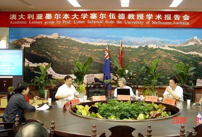 2006年9月7日—8日,澳大利亚墨尔本大学塞尔伍德·琳恩(Selwood)教授到我院进行学术访问。塞尔伍德·琳恩教授是国际胚胎学知名专家、澳大利亚历史上第24位女博士。在我院期间,塞尔伍德·琳恩教授受到了我院师生的热烈欢迎。
