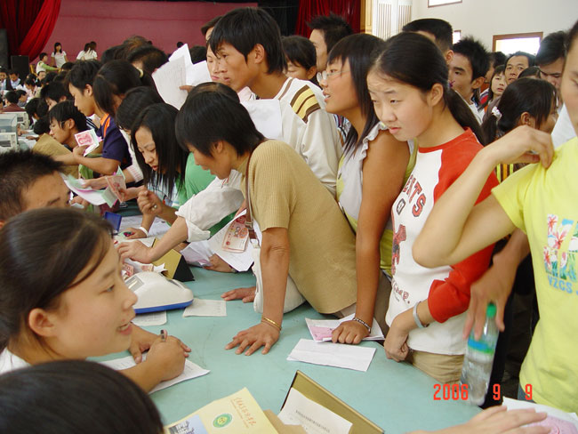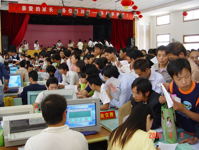 今天是我院本省新生报到的高峰,为了做好新生及学生家长的接待工作,我院组织专班搞好新生入校的一条龙服务。在武昌火车站和武昌付家坡汽车站等武汉、鄂州、黄州大型车站设有迎新接待站,组织新生及家长乘车来校,到校后各系、部及相关处室相互配合做好迎新工作,并由老生引导每一位新生办理入学报到手续,安排新生住宿。