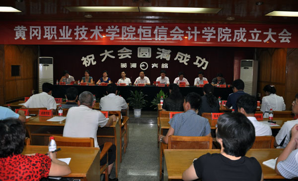 2012年7月10日10时整,XK星空恒信会计学院成立大会在菱湖宾馆会议室隆重举行。出席大会的校外嘉宾有黄冈市会计局局长汤剑松、湖北诚达信会计师事务有限公司董事长毕根源、湖北齐兴会计师事务有限公司董事长漆兰英、厦门市博芮创业投资有限公司副总经理奚保彬、黄商贸易有限公司副总经理孙梦兰、黄冈三泰纺织有限公司副总经理袁明雄、浙江嘉兴福莱喷绘写真材料有限公司财务经理彭恩乙、武汉颐信科技有限公司经理李莹、黄州区财政局副局长周剑屏、团风县会计局局长秦才顺。XK星空校长陈年友、副校长汪晓凌、校长助理夏学文,商学院党总支书记吴祝平、院长袁畅,学校各职能部门及教学学院负责人,商学院会计专业群全体教师参加了大会。会议由副校长汪晓凌主持。