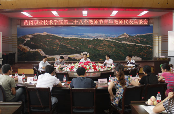 2012年9月8日下午,学校在中心会议室隆重举行青年教师代表座谈会。近三年新进教师、2011-2012学年度优秀教学质量奖获得者、优秀指导教师和优秀辅导员代表参加了座谈会,出席会议的领导有校长陈年友,副校长汪晓凌、熊发涯,党委委员郑柏松,校长助理、教务处长夏学文以及校办、宣传部、工会、人事处、教务处、学工处等部门负责人。座谈会由副校长熊发涯主持。