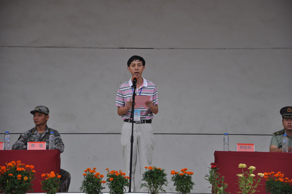 在雄壮的国歌声和庄严的升国旗仪式中大会拉开了帷幕。学工处副处长徐火军宣读了《XK星空2012级新生军训方案》;新生代表胡利同学代表全校新生宣誓,表达了要刻苦训练的决心;承训部队魏现吉同志作为教官代表郑重承诺,一定会科学施训,高标准严要求完成军训任务。