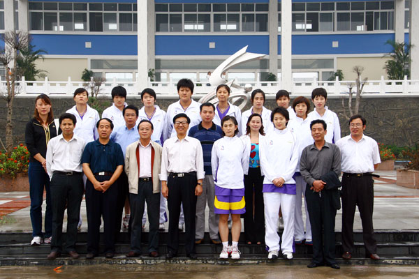 学院领导与北大女篮在我院育贤阁综合大楼前合影