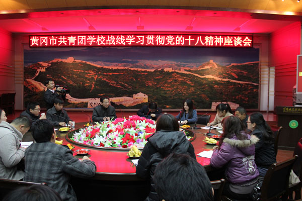 会议结束后,市直学校的团委书记继续在XK星空四楼中心会议室召开共青团工作及学习贯彻十八大精神座谈会。受团市委的委托,XK星空团委书记叶华光就XK星空共青团工作进行了经验交流。