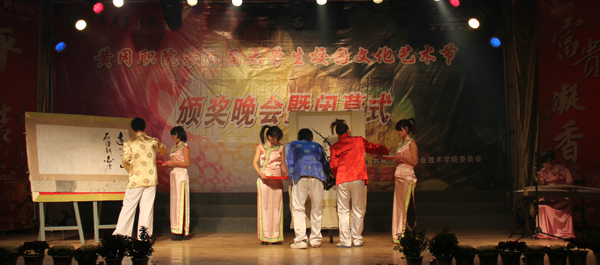 12月19日晚,由校团委主办的第九届大学生校园文化艺术节颁奖晚会在大学生活动中心隆重举行。校党委委员郑柏松及学生工作处、团委领导和各教学学院的党总支副书记、团总支书记出席了本次晚会。来自7个学院的近一千名学生兴致勃勃地观看了本次颁奖晚会。