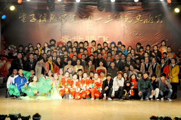 特别值得一提的是,电子信息学院在本次晚会中展现了专业优势,将晚会现场与网络信息连接在一起,很多毕业的学生和现场观看的学生,他们通过网上发送微博向学校和电子信息学院传递心中的喜悦和衷心的祝福,然后在现场的大屏幕上共同分享,学生与老师在一起,学生与学校在一起,让学生感觉非常温暖,让学校变得更加强大。