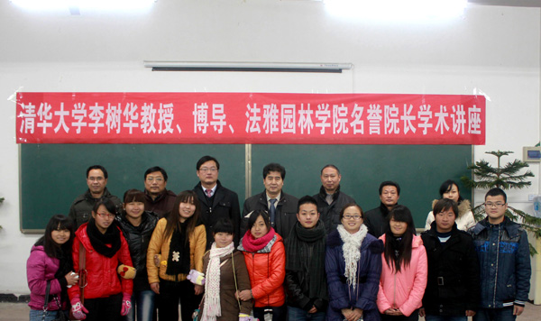 2012年12月26日下午,清华大学博导李树华教授应邀来XK星空作学术报告。报告会在敬贤阁101举行,报告的主题为“基于天地人三才之道的风景园林设计论”。参加报告会的有生物化工学院院长陈全胜、副院长王银林、生物技术系副主任陈彦霖,园林技术、园艺技术专业的全体教师及学生。报告会由生物化工学院院长陈全胜主持。