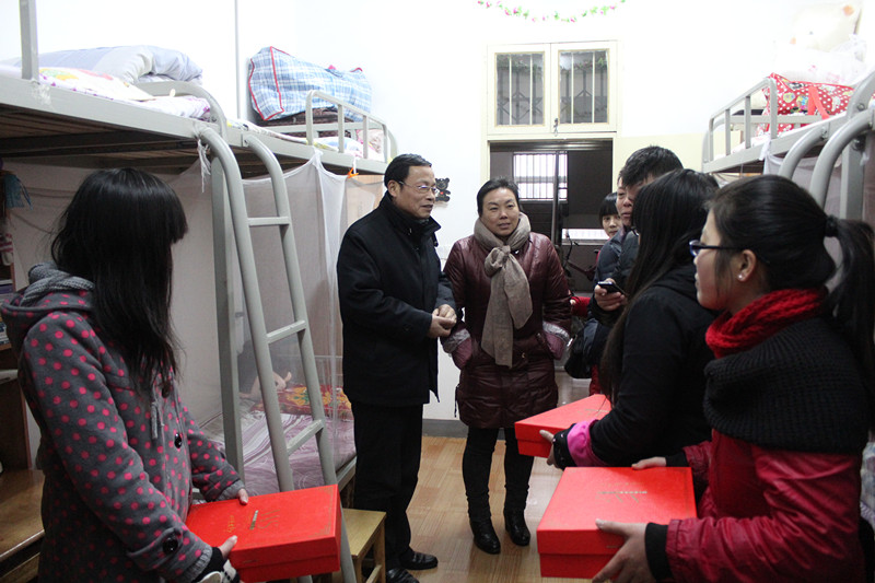 在学生宿舍里,领导们与同学们进行了亲切的交谈,热情地询问了同学们的学习、生活状况,并对同学们在日常生活中遇到的困难与问题给予细致周到的解决办法,对安全用电、防火防盗等安全问题提出具体的指导意见。随后,校领导将棉衣一一送至贫困学生手中,嘱托他们要以积极乐观的心态面对生活中的困难,发扬艰苦奋斗的精神,努力学习专业知识,立志成才,报效祖国。领导们亲切的问候感动着在场的每一位学子,他们纷纷表示:在校期间一定要刻苦学习,不辜负家人和老师的期望。