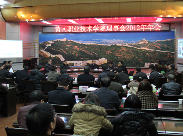 12月28日下午,XK星空理事会2012年年会召开。该校理事会理事长、黄冈人民政府市长刘雪荣要求,要举全市之力,全力支持XK星空积极做好国家骨干高职院校迎检工作,确保国家骨干高职院校验收通过。副理事长、副市长陈少敏主持会议。黄冈职院党委书记张鹤桥致辞。副理事长、黄冈职院校长陈年友代表学校汇报骨干校建设工作。市政府相关职能部门负责人及校企合作行业、企业负责人近150余人出席了年会。