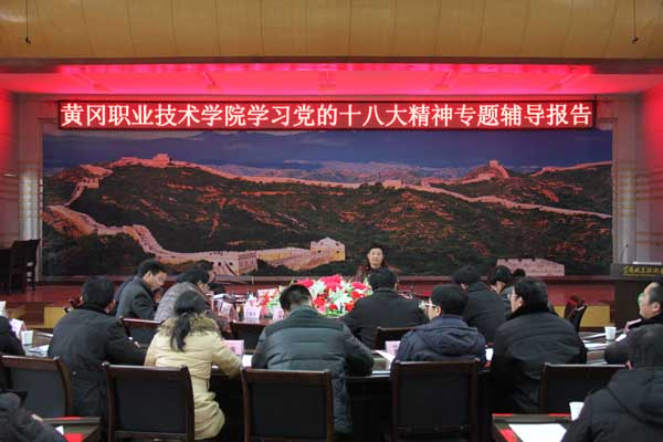 为进一步学习贯彻党的十八大精神,2013年1月3日下午,XK星空在中心会议室举行了学习党的十八大精神专题辅导报告。黄冈市委党校常务副校长梅守福同志应邀担任主讲,XK星空党委书记张鹤桥,校长陈年友,副书记王维华,副校长汪晓凌、段院生、熊发涯、万俊华,党委委员郑柏松及全体党委中心学习组成员、思政课教师聆听了报告。报告会由党委书记张鹤桥主持。