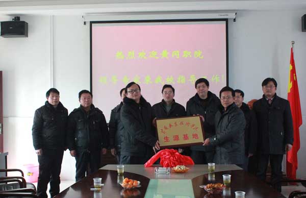 红安职教中心副校长张征首先对黄冈职院各位领导的到来表示欢迎,张校长介绍了红安职教中心近几年的建设和发展。吴祝平表示愿意与红安职教中心结成姊妹学校,共同发展,共同提高。王政芳代表学校授予红安职教中心为XK星空生源基地,并就XK星空2013年面向中职毕业生单独招生情况作了解释说明。陈全胜介绍了XK星空生物化工学院的基本情况,并表示愿意在专业建设、师资培养、课程建设、技能鉴定、实习基地建设等方面结对帮扶,在建设湖北省现代畜牧职教集团中发挥重要作用。袁畅对红安职教中心多年来对XK星空的支持表示感谢,并希望通过中高职校校合作培养出更多的中高职优秀人才。