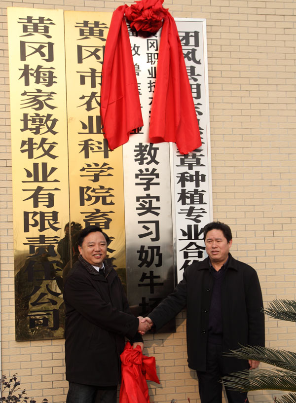 随后,陈校长一行考察了黄冈市种畜场并和叶成峰副局长一起为“XK星空畜牧兽医专业猪生产教学基地”揭牌。在种畜场,陈校长详细询问了该场的生产经营状况,并表示,校企共建教学生产基地,既能加快XK星空人才培养模式改革,促进学生职业素质的提高,又能促进学校的发展、行业的繁荣、企业的壮大、员工的进步,同时为黄冈市的经济建设服务。