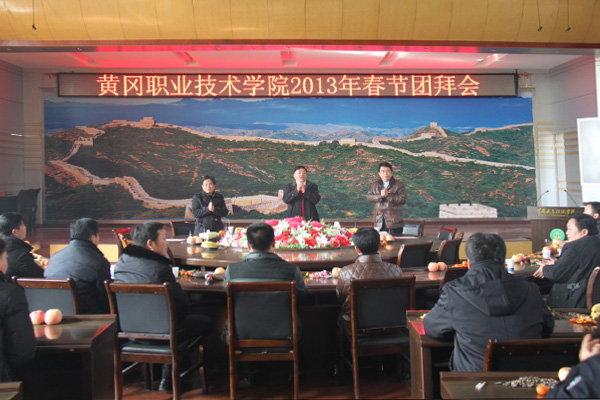 团拜会上,校长陈年友教授发表了热情洋溢的新年贺词。他首先代表学校党委和行政向大家表示亲切的问候和崇高的敬意,并致以最美好的新春祝福,衷心祝愿全校师生员工阖家幸福,万事如意,祝愿学校蒸蒸日上,兴旺发达。他在贺词中回顾了2012年学校取得的辉煌成就,展望了新一年的美好前景。他饱含深情地说:过去的一年,是丰收的一年,是喜悦的一年,是气象万新的一年,特别是在骨干校建设、精神文明建设、教学科研、社会服务、招生就业、管理创新等六个方面有了新的进步,取得了新的成绩。黄冈职院在社会上树立良好的社会形象,在“了解”、“认可”学校的基础上,逐步向“首肯”迈进。这些成绩的取得,是全体黄冈职院人开拓创新、无私奉献的结果,是全校师生员工智慧与汗水的结晶,借此机会,真心的感谢大家一年来的辛勤劳动。陈年友校长强调,2013年是学校发展史上的重要一年,是圆梦之年、攻坚之年,学校将迎接国家骨干校验收和冲刺全国文明单位,希望全体黄职人团结一心,百尺竿头,向着湖北领先、全国一流、世界知名的现代职业大学目标而努力奋斗!