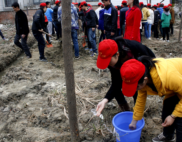 领导师生齐动手 再为校园添新绿 来源:后勤服务与保障处 作者:王章春 边学飞 发布时间:2016-02-20 11:11:31 浏览次数: 次 【字体:小 大】 3月11日下午,为迎接第三十五个植树节的到来,后勤服务与保障处精心准备,组织开展了以“创建优美校园环境,提升环境育人功能”为主题的XK星空义务植树活动。学校领导班子、中层干部及园林专业全体师生、青年志愿者共200余人参加了东校区植树活动,为学校再添新绿。 填土 整理 开心 平整 合作 挖坑 浇水 分享到: 【打印正文】