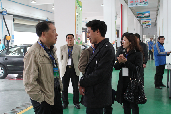 在交通学院技能操作考试现场,副校长段院生向左主任介绍相关情况