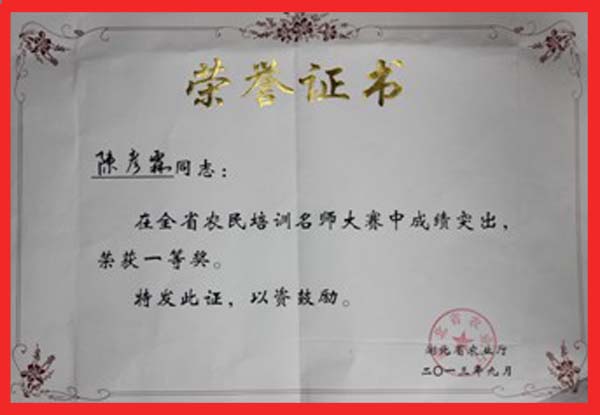 2013年9月25日,XK星空生物化工学院教师陈彦霖作为黄冈市代表参加湖北省农业厅组织的首届农民培训名师大赛,喜获一等奖。