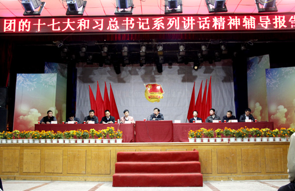 2013年11月14日晚,学校2013年下半年团校开班仪式在大学生活动中心隆重举行。校团委特请邀请黄冈团市委书记骆明正开班上课,为团校学员解读《共青团十七大会议精神》。校党委委员、工会主席郑柏松,校团委书记、学工处处长叶华光,学工处副处长徐火军,校团委副书记、学工处副处长陈胜红及各学院团总支副书记出席了此次活动。本次团课由郑柏松主持。