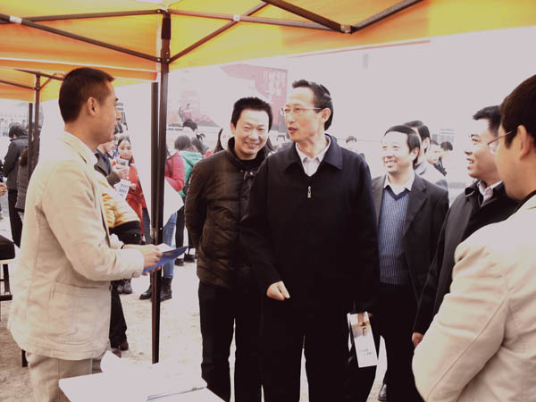 詹旺民作重要讲话。他说,今天是个好天气,雾霾不见了,阳光正好。就业是民生之本,市委、市政府高度重视高校毕业生就业工作,当前,黄冈正步入经济社会发展的快车道,为吸引和留住人才,出台了一系列促进高校毕业生就业创业的政策和措施,吸引了一批大学生到黄冈实习创业,为黄冈“双强双兴”战略的加速实施提供了强大的引擎。他鼓励同学们留在黄冈,到企业一线、到基层建功立业,实现自己的人生理想。他要求用人单位,特别是本地企业,要做好毕业生就业相关工作。开幕式结束后,他特地到招聘专区,与招聘单位、应聘学生进行亲切交谈。