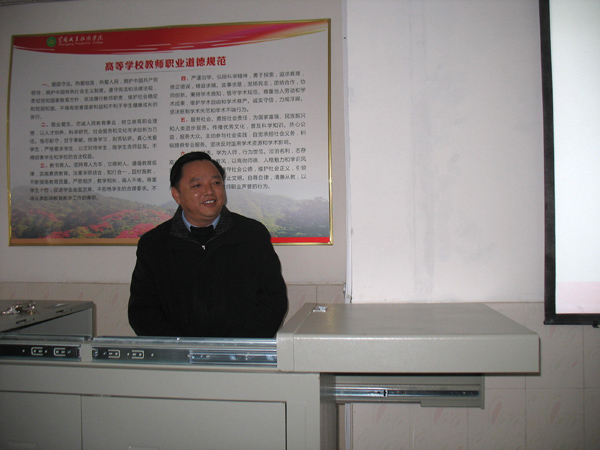 校长陈年友教授作了关于“提高素质 科学履职”的报告,从“做办学观念的创新者、做办学进步的促进者、做办学质量的保护者”三个方面展开,对“双师”教师的要求及“双师型”教师的特点、XK星空办学的观念及其作用、教师服务的理解进行了详细的诠释。他的报告激情洋溢,赢得了老师们的阵阵掌声,既让大家认识到了学校办学的艰辛和成绩的来之不易,也让公共课老师进一步明确了努力方向和奋斗目标。