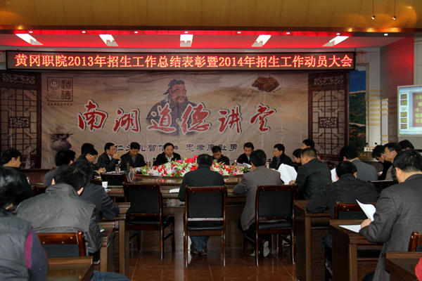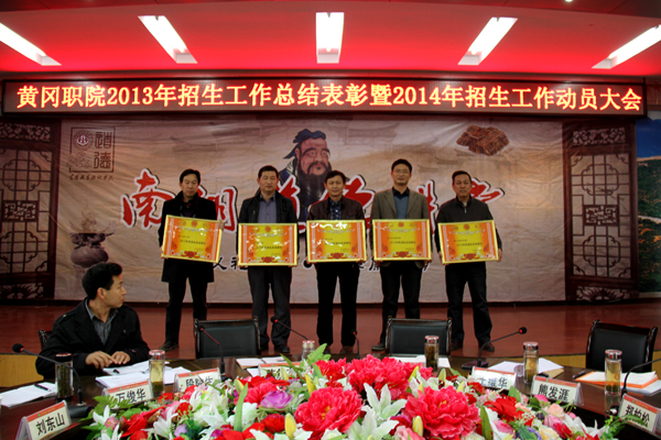 会上,党委副书记王维华宣读了《关于表彰2013年招生工作先进单位和先进个人的决定》,校领导为获表彰的先进集体和个人颁奖;副校长段院生宣读了《XK星空2014年招生工作方案》、《关于下达2014年招生任务的通知》;招生处处长田安国通报了2013年各招生责任单位招生任务完成情况;图书馆书记段茂盛代表2013年招生先进单位作经验交流,彭亚雄老师作为招生先进个人代表与大家分享了自己在招生工作方面好的做法和经验;副校长刘东山总结了2013年招生工作的“十好”、“六不足”,并对2014年招生工作作了全面部署。党委书记张鹤桥作了重要讲话,他指出,一要继续充分认识招生工作的艰巨性和复杂性,并详细分析了当前招生面临的六大严峻形势;二是必须下定决心完成今年的招生任务,领导干部在思想上弦要绷紧,招生人员的劲要鼓足,责任心要增强,并号召全校师生员工要全员参与,全员招生。最后,校长陈年友强调,2014年招生工作,我们要迎难而上,创新而为,从现在开始,着手搞好今年各项招生宣传工作。
