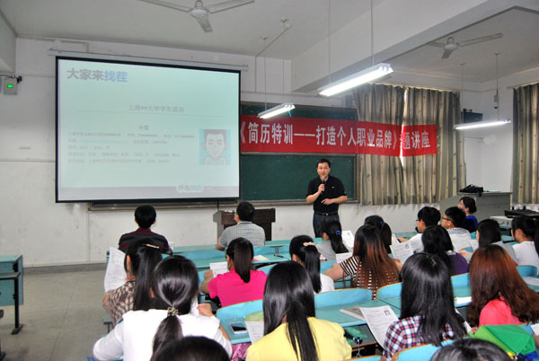 苏航讲师是全球职业规划师,国家职业指导师,生涯教练,也是湖北省“希望之星”成长导师团讲师,近期已经在湖南省的高校中进行了多场简历特训的公益讲座,XK星空是他巡回讲座中的第一所湖北省高校。本次讲座的主题是“简历特训——打造个人职业品牌”。在讲座中,有着丰富经验的苏老师以一份大学生的求职简历为例,引导学生从内容、措辞、模板三个方面,逐步分析归纳简历的制作技巧(内容上要针对应聘岗位,措辞上要具体、简洁、有条理,模板上要商务化,易于阅读),得到台下学生热情的呼应。他强调,写简历就是打造个人的职业品牌,一份好的简历不是写出来的,而是用脚走出来的,是对大学期间的实习、兼职、实践、学习等经历的高度概括,从而引导大学生要尽早根据企业用人需求,调整个人在校期间的生涯规划,更好地适应用人单位的需求。最后他还介绍了第二届全国大学生简历大赛的组织情况,激励大学生心怀梦想,勇于参赛。
