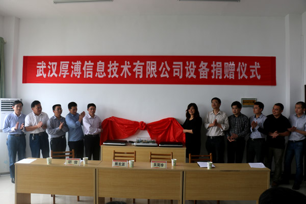 本次仪式上,吴简珍女士代表武汉厚溥信息技术有限公司向学校捐赠了移动应用开发平台1台,智能农业数据网关1台,智能农业仿真沙盘1个,三项合计10万元,主要用于XK星空电子信息学院的现场教学和操作应用。副校长熊发涯教授代表学校接受了捐赠并表达了诚挚的感谢。