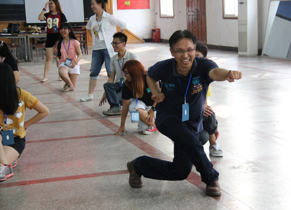 张爱东老师负责黄梅戏的教学任务。尽管营员们都有较好的汉语功底,但是作为第一次来到中国的他们,也是第一次接触中国戏剧,尤其是黄梅戏。张老师细致地教他们学习圆场步、兰花指 、掌、眼的方法。营员们惊奇地发现,中国戏剧中的一举一动、一言一行、一颦一笑,原来都是那么韵味十足。随后,营员们一起学唱黄梅戏经典唱段《夫妻双双把家还》,几对组合居然能表演出那么一点黄梅戏的韵味。