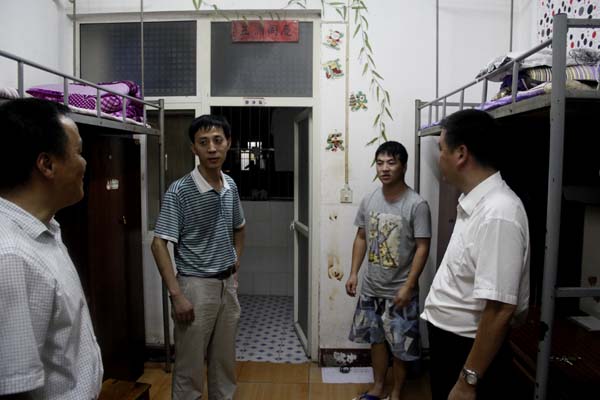 “今天是中秋节,今晚我来看看大家,祝大家中秋节快乐!同时也请你们别忘了打个电话回家,向爸爸妈妈及家人报个平安,送上节日的问候…….” “你老家是哪里的?来这里习惯了吗?还有什么需要我们帮忙的吗?” “刚来学校报到,注意防火、防盗和安全等工作,遇事多与辅导员老师沟通,同学们之间要相互关心、爱护,共同营造温馨和谐的生活学习环境”,这是郑柏松看望2014级新生时说的最多的一段话。每到一间宿舍,他都要亲切与同学们握手,拉家常、聊学习、谈生活,欢声笑语,其乐融融。当得知有位鄂州籍女生没有来得及购买蚊帐,郑委员于次日早晨,亲自送了一床蚊帐过去,让同学们觉得有几分惊奇,又感到亲切。