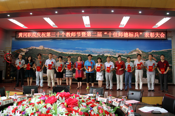 表彰大会上,党委副书记王维华宣读了《关于表彰“从教三十年”教师的决定》,副校长段院生宣读了《关于表彰第二届“十佳师德标兵”的决定》,副校长熊发涯带领全体参会人员重温了高等学校教师师德规范。党委书记张鹤桥、校长陈年友向从教三十年教师及十佳师德标兵颁发了荣誉证书。