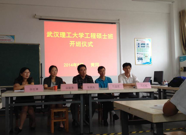 2014年9月13日上午9点,黄冈职院交通学院与武汉理工汽车学院合作开办“武汉理工大学车辆工程专业工程硕士班”开班典礼在汽车电器实训室隆重举行。参加本次会议的有武汉理工大学汽车学院副院长张国方教授、陈盛双教授、杨慧萍副教授,黄冈职院党委委员、工会主席郑柏松,交通学院院长张红英教授、办公室主任聂进老师以及全体在职研究生新学员。