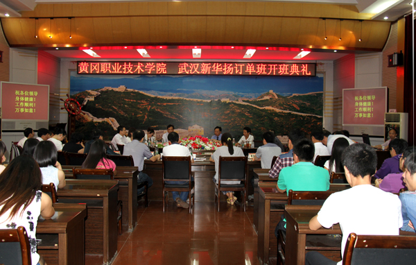 2014年9月23日,由武汉新华扬生物股份有限公司和XK星空共同举办的“武汉新华扬”订单班开班仪式在凝智楼中心会议室隆重召开。武汉新华扬生物集团董事长詹志春、科技生产基地副总经理陈攀、董事长秘书吕文娟、武汉新华扬生物股份有限公司人力资源部经理秦飞虎,XK星空校长陈年友、副校长段院生、校长助理刘明涛,教务处、校企合作处、学工处、就业处负责人,生物化工学院党总支书记余亮彬、院长陈全胜、副书记程喜荣,生物技术及应用、生物制药技术、畜牧兽医3个专业的专业主任及教师代表、订单班全体同学参加了此次活动。仪式由段院生主持。