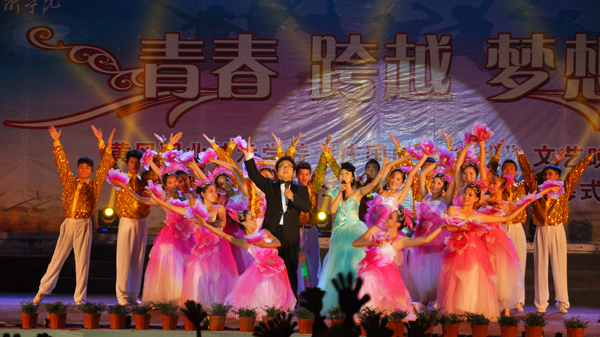 校园音乐剧、相声、歌曲串烧、朗诵、劲爆街舞、健美操等各具特点不同形式的节目,掀起了晚会的阵阵高潮。大学生艺术团的姑娘们表演的《喜鹊喳喳喳》舞蹈,画面唯美、动作轻快,展示了一群活泼可爱、叽叽喳喳叫个不停的喜鹊与大自然和谐相处的美好景象。辅导员老师们表演的时下最流行的舞蹈《小苹果》,台上台下共同齐舞,拉近了老师与学生的距离。相声《学电台》诙谐幽默,赢得了观众阵阵掌声。舞蹈《月狐吟》和激情四射的街舞串烧更是展示了学生们较强的表演实力。最后本场晚会在气势恢宏、催人奋进的《共筑中国梦》歌曲中圆满落下帷幕。