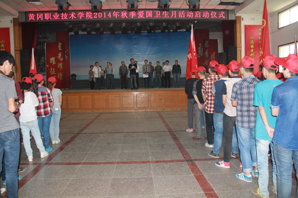 10月9日下午3点半,学校在大学生活动中心隆重举行黄冈职院2014年秋季爱国卫生月活动启动仪式。校党委副书记王维华,副校长万俊华、刘东山,党委委员、工会主席郑柏松出席启动式现场,学校办公室、文明办、工会、学工处、保卫处、后勤服务与保障处等部门负责人及各教学学院党总支副书记、团总支书记、2014级学生代表400余人参加了启动式。