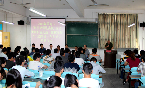2014年10月9日上午,黄冈市创业培训进高校活动在XK星空育贤阁104教室启动。来自XK星空交通学院、建筑学院的228名2015届毕业生参加了学习。黄冈市劳动局副局长肖庆华、人力资源和社会保障局陈科宇科长、就业训练中心主任居纪明等领导参加启动仪式。学校党委委员、副校长段院生,成教学院院长张世勇、交通学院总支书记钟彬杉、建筑学院院长刘晓敏等一同参加。启动仪式由张世勇主持。