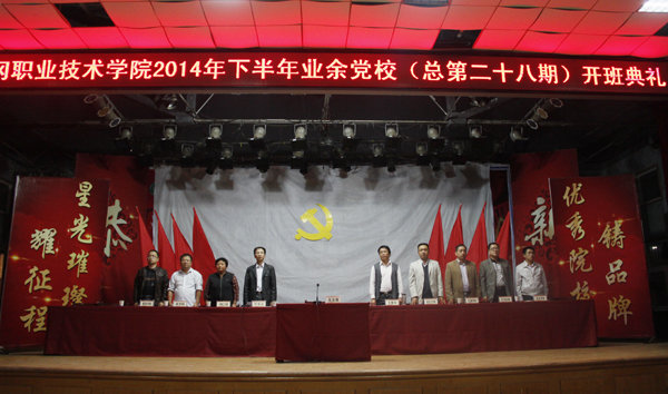 10月28日晚6点20,学校党委党校在大学生活动中心举行2014年下半年业余党校(总第二十八期)开班典礼。学校党委副书记、纪委书记、党校校长王维华出席,医药卫生学院党委副书记、各学院党总支副书记、团总支书记率全体学员参加。党委组织部部长叶华光主持开班典礼。