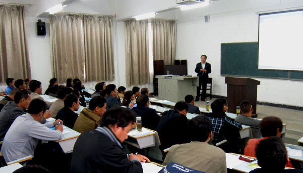 10月29日上午,校长陈年友为黄冈市新型职业农民培育工程牲猪养殖创业培训班学员作首场专题讲座。