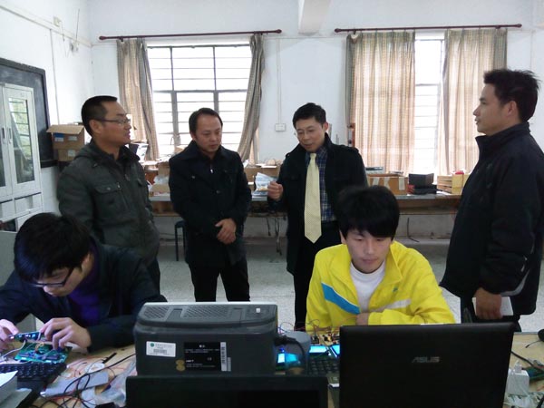 熊发涯分别到导游服务项目、会计技能项目、工程造价项目、现代物流储存与配送作业优化设计和实施项目、电子产品设计与制作项目、计算机网络应用项目的正在集训场地,看望了正在紧张集训的师生们。在看望过程中,他每到一处都详细的向指导老师和参赛选手询问他们的训练情况、生活情况以及到武汉参赛的乘车方式等,鼓励他们增强信心、沉着应战,保持充沛的体力与精力,以最佳的状态参赛,争取在今年的省赛中再创辉煌。
