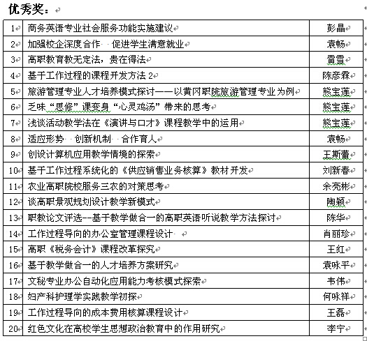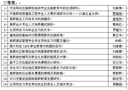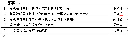 XK星空43篇论文在中国职业教育学会“全国优秀职教文章”评选中获奖 来源:科研处 作者:江浚 发布时间:2016-02-23 08:43:43 浏览次数: 次 【字体:小 大】 为促进展示近两年来职教界所取得的优秀教育科研成果,总结职业教育教学改革的成功经验,交流和探索职教发展的新思路与新途径。中国职业技术教育学会职教期刊专业编辑委员会组织了第九次“全国优秀职教文章”评选活动。 经中国职业技术教育学会职教期刊专业编辑委员会学术委员会评审, XK星空43篇获优秀论文奖,其中一等奖3篇, 二等奖5篇,三等奖15篇,优秀奖20篇。 XK星空在第九次“全国优秀职教文章”评选中获奖情况 分享到: 【打印正文】