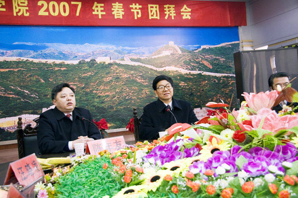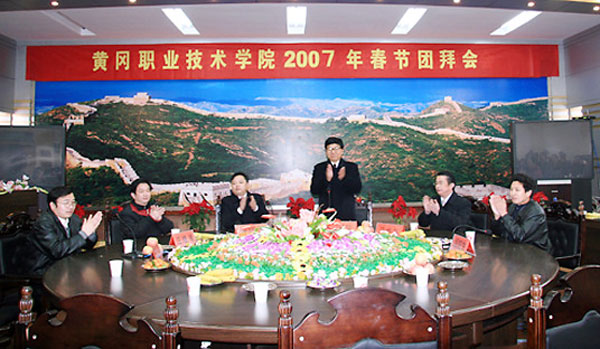 2月18日,农历正月初一,学院在行政楼四楼中心会议室举行2007年春节团拜会。春节团拜会由院党委书记涂普生同志主持,院长陈年友致新年贺词。院领导涂普生、陈年友、王维华、汪晓凌、段院生、夏启中,各系部处室负责人及留守学院的教职工、学生代表110余人参加了春节团拜会。