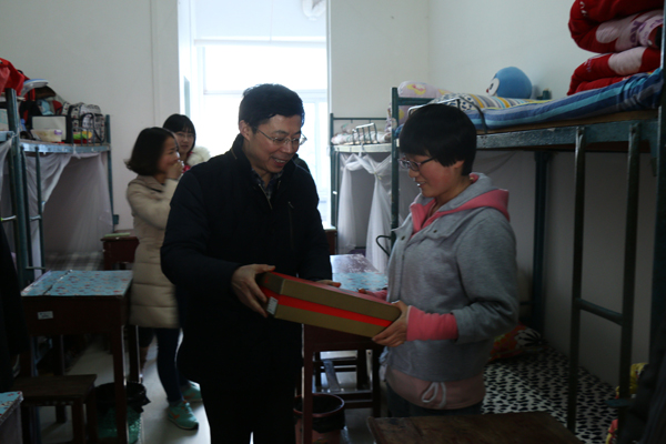 岁末已至,但校园里暖意洋洋,南2舍和南5舍暖潮涌动,正气凛凛。熊发涯为贫困生徐盼同学和雷书柔同学每人送了一套保暖衣,确保他们能够安心、温暖过寒冬。他亲切地询问他们的生活情况,嘱托他们要多学知识、掌握技能,希望他们自立自强、早日成才,成为同学们学习的榜样,将来为社会多做贡献。