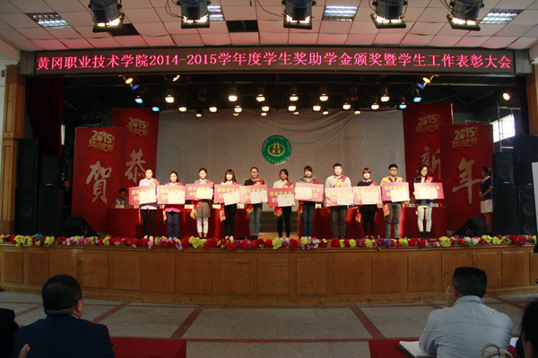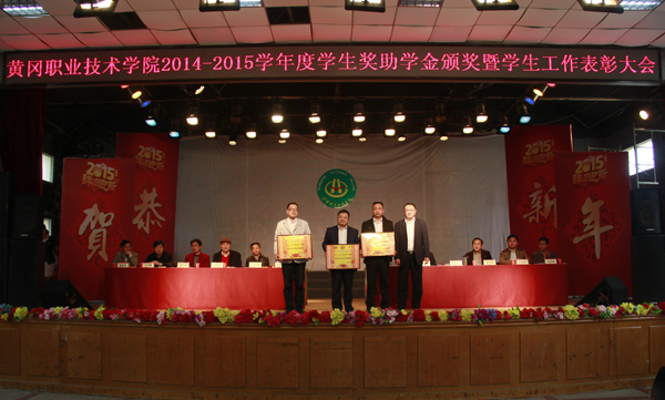 4月2日下午,学校在大学生活动中心召开2014-2015学年度学生奖助学金颁奖暨学生工作表彰大会。各教学学院党总支书记、副书记,校办公室、党务部、教务处、学工处相关工作人员、全体专兼职辅导员与600多名学生代表参加了会议。校长姜安心,党委委员、工会主席郑柏松,校长助理、办公室主任刘明涛出席。大会由郑柏松主持。