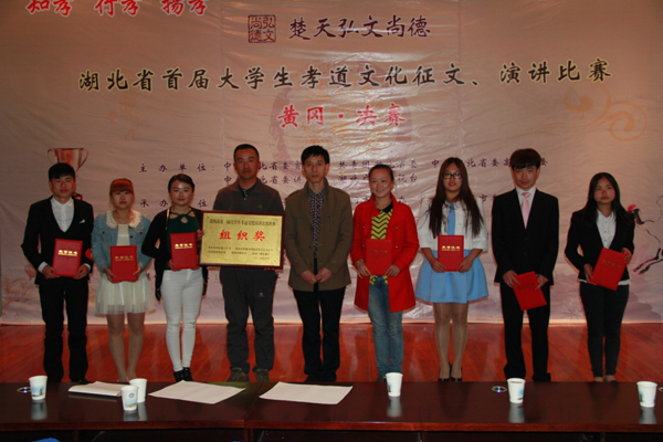 为深入贯彻落实党的十八大和十八届三中、四中全会精神,积极培育和践行社会主义核心价值观。2015年4月13日下午3点,由中共黄冈市委宣传部、黄冈市文明办、共青团黄冈市委、黄冈市教育局、黄冈市电视台联合主办的湖北省首届大学生孝道文化演讲比赛黄冈决赛在黄冈师范学院隆重举行。XK星空党委委员、工会主席郑柏松,学工处副处长、校团委副书记陈胜红,校团委汲艳蕊老师带队参加了比赛。