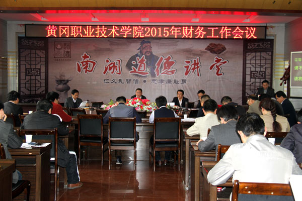 4月17日下午,学校在凝智楼中心会议室召开2015年财务工作会议,出席会议的有校长姜安心、党委副书记王维华、副校长万俊华、党委委员夏学文,参加会议的有校内各单位负责人、办公室主任,大会由党委副书记王维华同志主持。